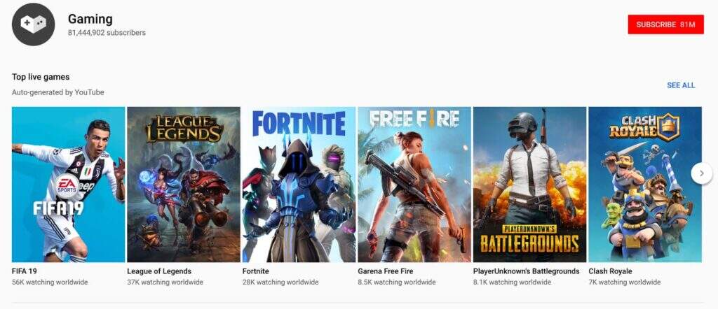 YouTube Gaming是一个单独的YouTube页面 ,专注于游戏社区和文化,将YouTube用户与来自世界各地的游戏和玩家联系起来。