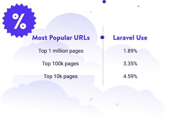 使用此框架,您可以访问大量软件包(超过15,000个)和高级安全功能。以下是世界上最受欢迎的URL中使用Laravel的网站的百分比。