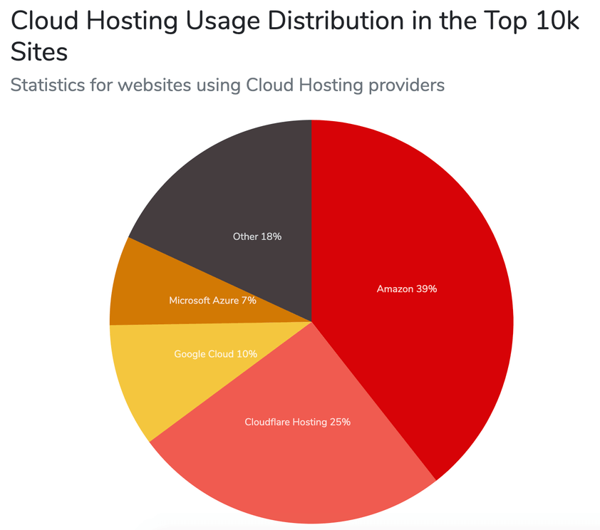 BuiltWith收集的其他数据显示,谷歌的云托管在网络上排名前10万的网站中排名第三——仅次于亚马逊和Cloudflare: