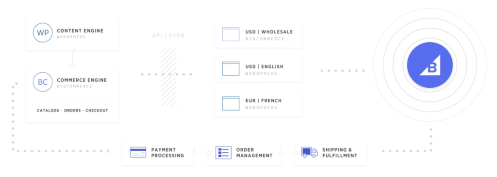 与WooCommerce和Shopify竞争的WordPress电子商务市场的新挑战者是BigCommerce,它最近为WordPress推出了无头商务解决方案(请务必阅读:使用Gatsby和WordPress搭建静态网站的教程)。在发布时,WordPress插件-BigCommerce有1000+多个活动安装,并且每天都在增长。