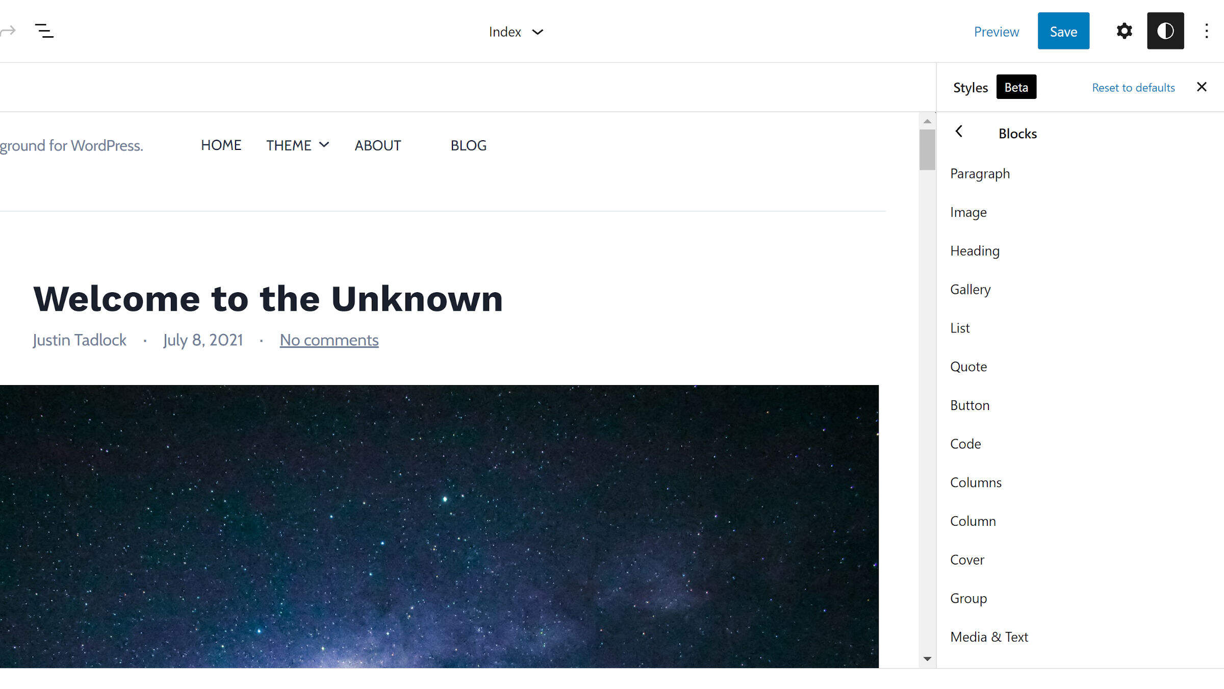用户还应该在全局样式侧边栏的根级别看到布局部分。他们现在可以调整整个站点的填充。