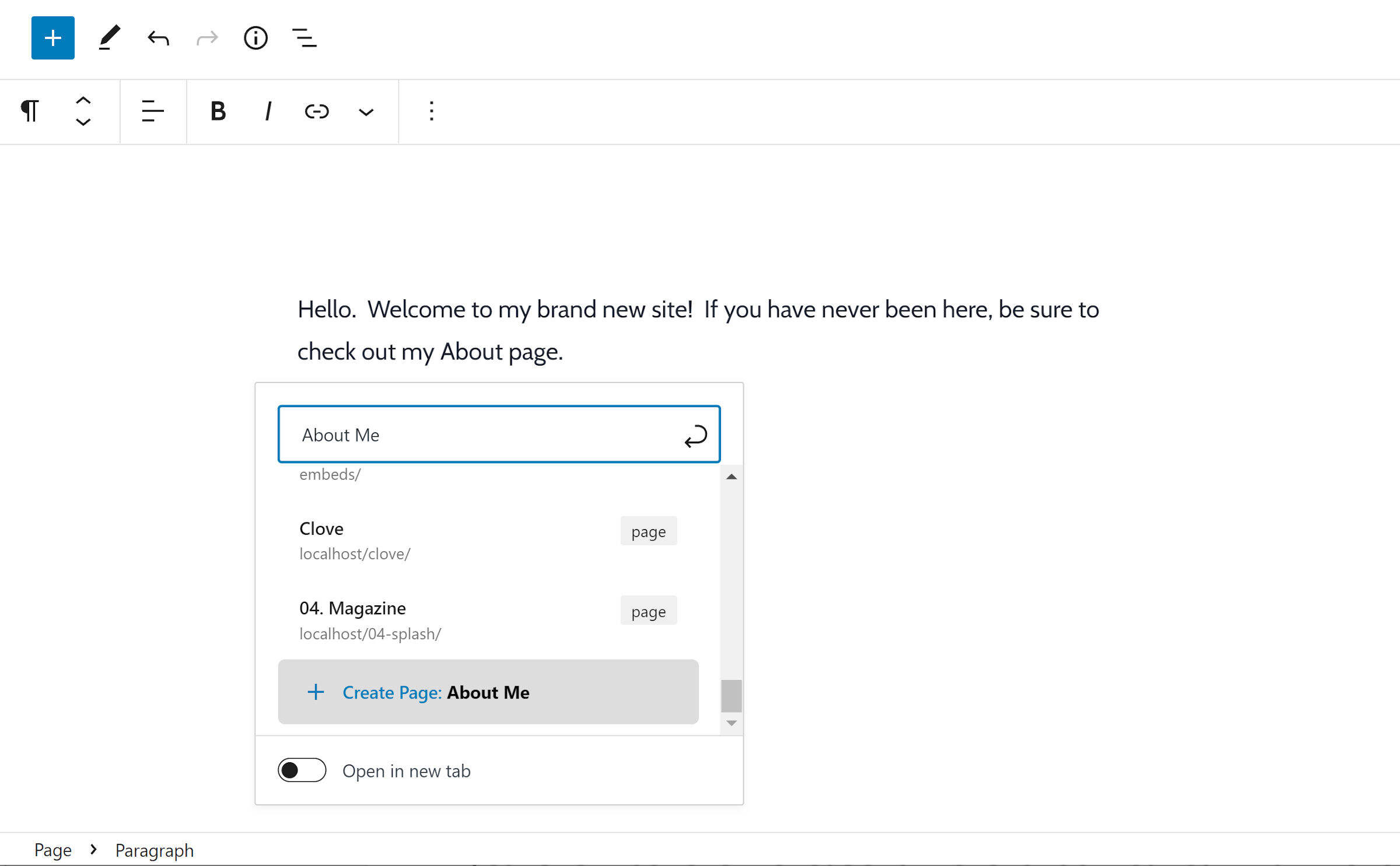 用户现在可以在添加链接时直接创建新页面。以前,用户只能在导航区块内添加项目时才能实现这一壮举。现在,它可用于添加到任何地方的链接。