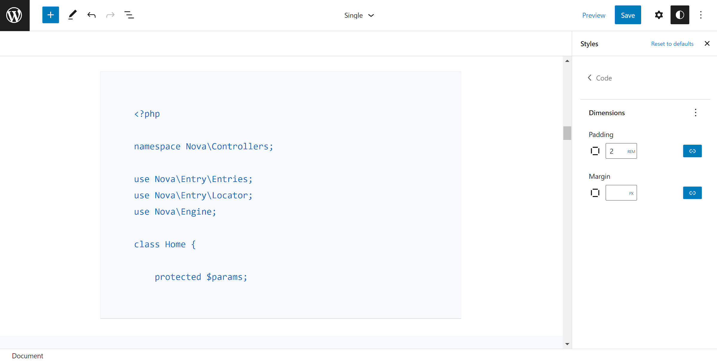 而且,它并不止于几种简单的颜色。用户可以在根和区块级别修改各种设计方面,例如排版和间距。