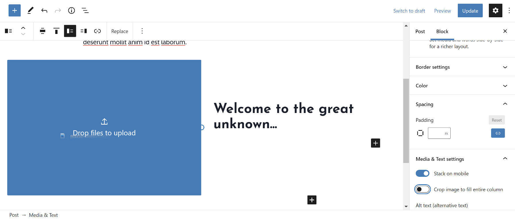 该功能已经存在于Cover和Image区块中,因此此更改使Media & Text保持最新状态。我们可能应该在几个月前就拥有这个功能,但补丁一直处于等待代码审查的状态。