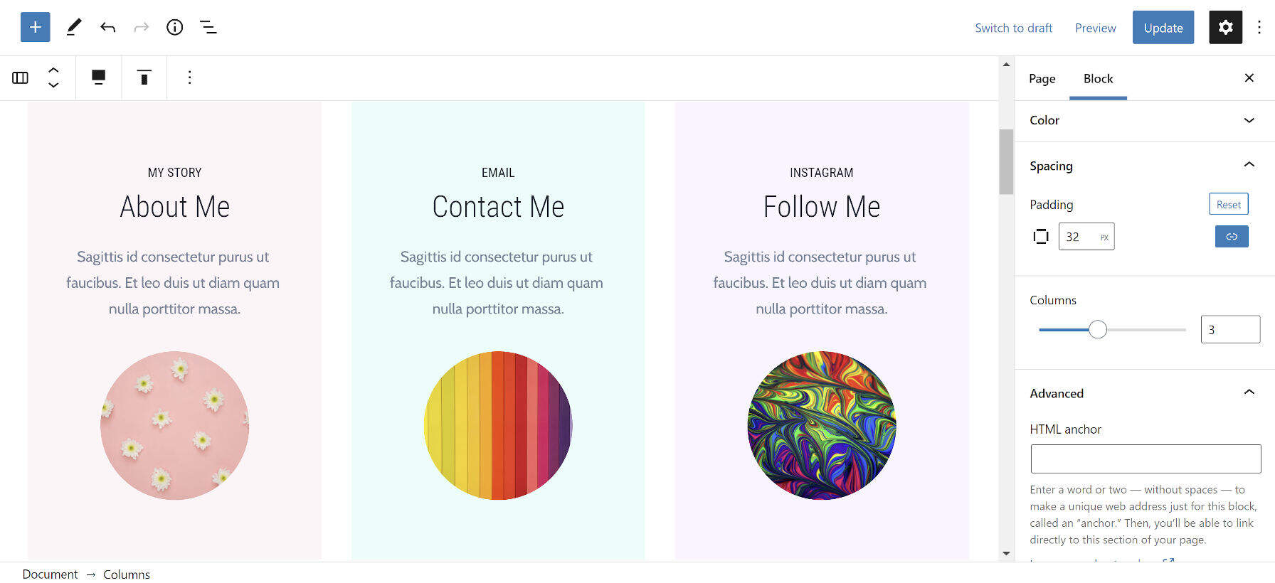 开发团队使用几个新选项升级了 Column 块。用户现在可以自定义各个列的填充和颜色。