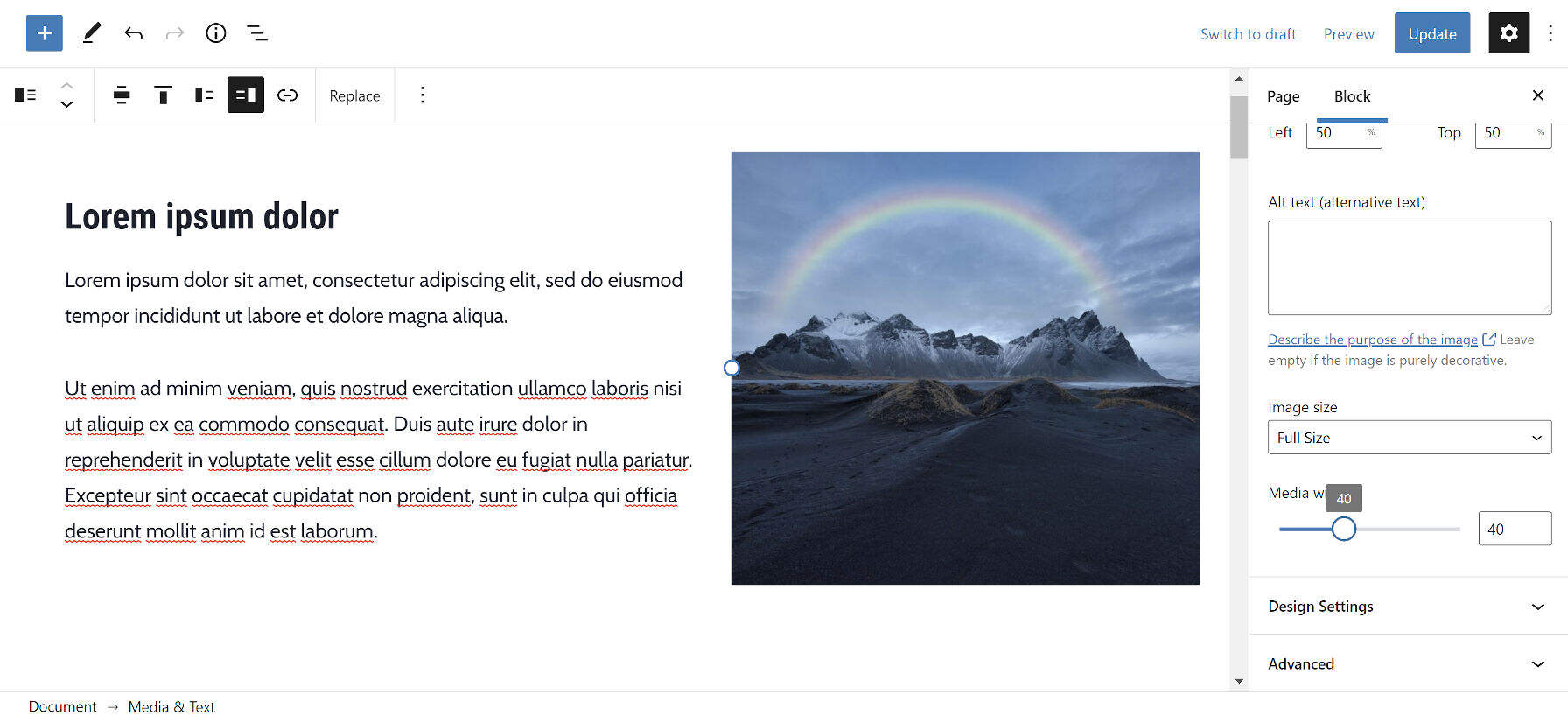 调整媒体和文本区块中的媒体宽度