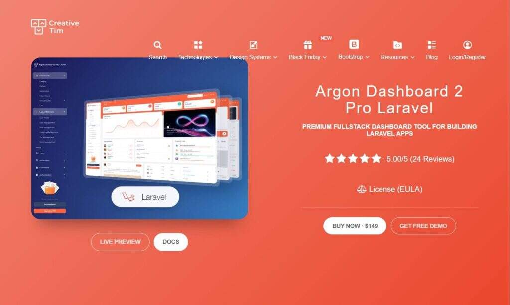 Argon Dashboard 2 Pro Laravel 是一款采用Laravel开发的全栈应用程序,它能帮助你更快地构建美观实用的Web项目。它将数百个 Bootstrap 5 UI 组件与 Laravel 后端结合在一起,拥有管理面板所需的所有功能。