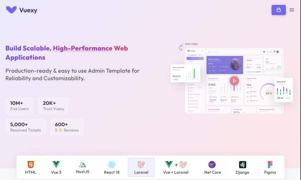 Vuexy 的设计目的是简化复杂的响应式网络应用程序的构建过程,它提供了大量预置组件、部件和布局选项,使其成为创建现代化专业管理面板的首选。