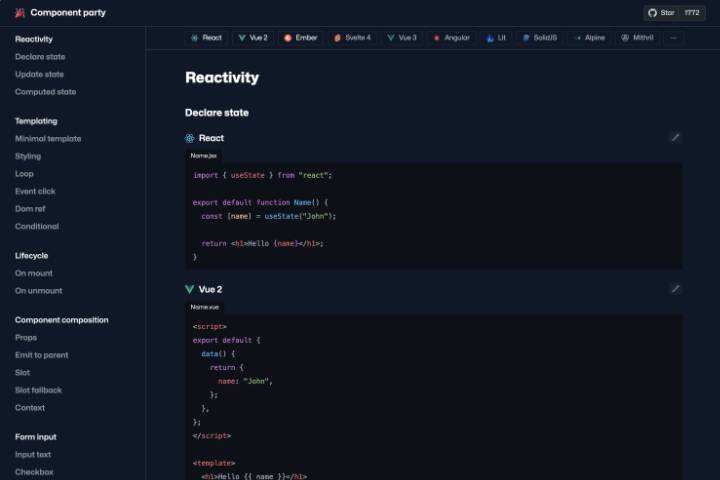 Component Party 简要概述了 Web 组件框架,通过实际示例重点介绍了语法和功能。它是开发人员在深入探索特定框架之前寻求快速入门的理想起点。