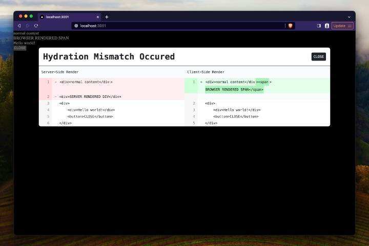 Hydration Overlay 是一款旨在简化 Hydration 错误调试的工具,它提供了一种可视化叠加,可突出显示服务器端和客户端渲染之间的差异。