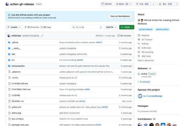 用于管理 Github 中发布版本的 GitHub Action。它可在 Linux、Windows 和 macOS 环境中运行,可让您轻松配置发布的各种选项,如上传文件、添加发布说明等。通过该工具,可以更轻松地实现软件发布流程的自动化。
