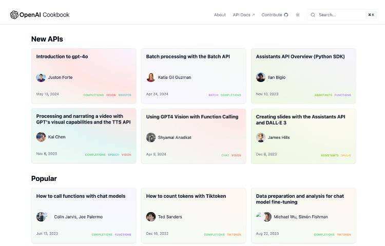 OpenAI Cookbook 提供了使用 OpenAI API 完成一些常见任务的示例代码和指南。大多数示例使用 Python,但其原理可适用于任何语言。您可以使用一些可用的 SDK(如 openai-node 或 openai – php)来应用它。