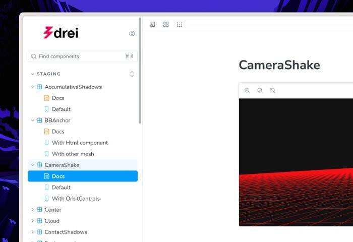 drei 是 react-three-fiber 的一个常用辅助库,它是 Three.js 的一个 React 渲染器。它为加载模型、创建控件、处理交互、设置光照和其他实用程序等常见任务提供组件。这是一个可以在网站上简单创建 3D 场景的优秀库。