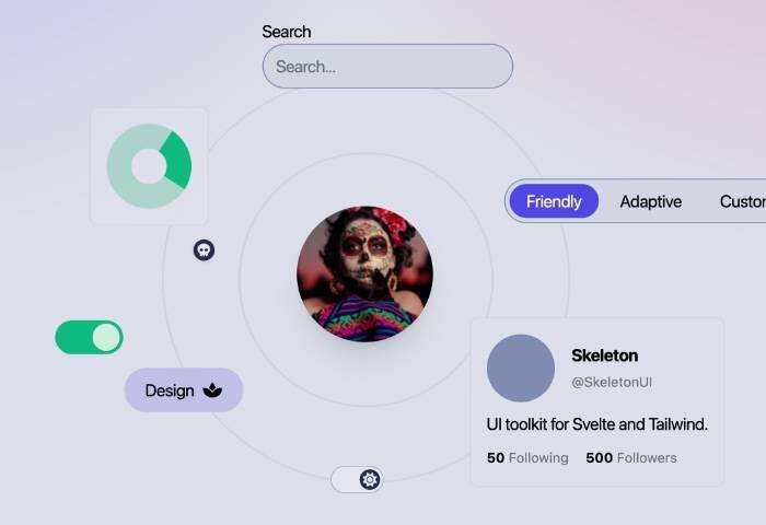 Skeleton 是一款使用 Svelte 和 Tailwind CSS 构建无障碍网页用户界面的工具包。它利用了 Svelte 和 SvelteKit 的内置功能,如组件、存储和操作。有了 Tailwind CSS,你可以使用 Tailwind 的实用类轻松定制组件样式。使用 .Svelte 和 SvelteKit 内建功能,如组件、存储和操作,您还可以使用 Tailwind CSS 轻松定制样式组件。