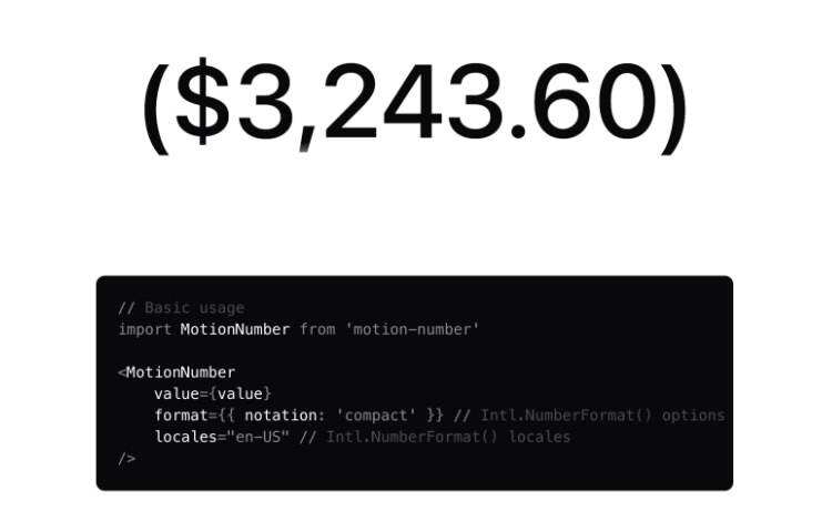 MotionNumber 是一个基于 Framer Motion 的 React.js 组件,旨在平滑过渡、格式化和本地化数字。