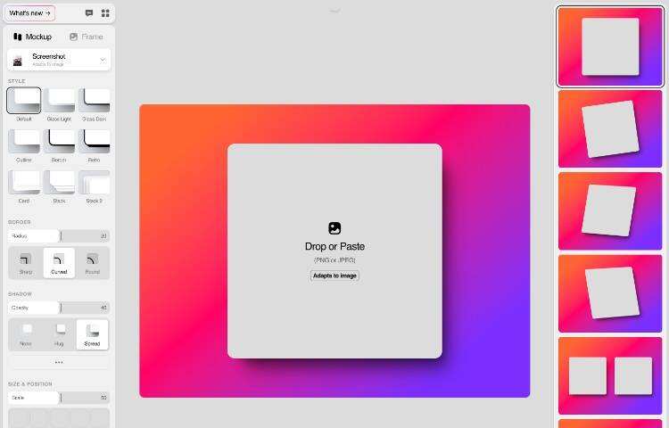 Shots.so 是一款免费在线工具,可帮助你快速创建精美的模型。只需上传截图,从最新 Apple 设备的场景中进行选择,然后自定义细节即可。