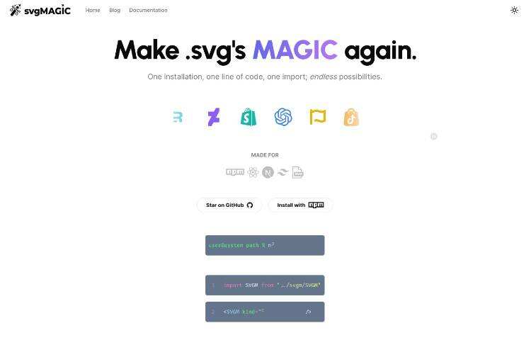 SVGMagic 是用于 Next.js 项目的开源软件包,可简化 SVG 的使用。它支持 SVG 代码和 .svg 文件,并与 TypeScript 和 MDX 无缝集成。