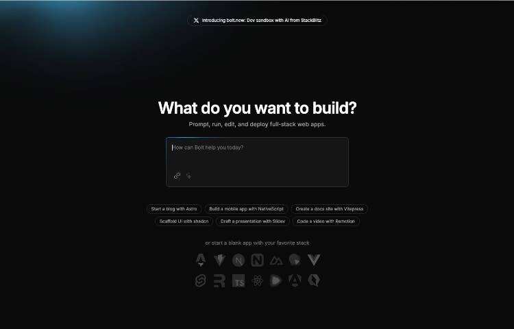 Bolt.new 是一款基于网络的人工智能工具,可以快速、轻松地构建网络应用程序原型。它 由Anthropic 的 Claude 3.5 支持,只需点击一下,就能通过简单的提示生成代码、查看实时预览和部署应用程序。它支持 Next.js、Vue.js、Astro 等框架,无需任何设置。它是创建快速原型和基本应用程序的完美工具。