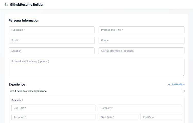 GitHub 简历生成器可让你创建专业简历。通过连接你的 GitHub 账户,它可以自动获取资源库、贡献和技能等详细信息。它还提供内置模板和自定义选项,让你可以根据自己的风格和需求定制简历。这是一款直接从 GitHub 创建简历的简单工具。