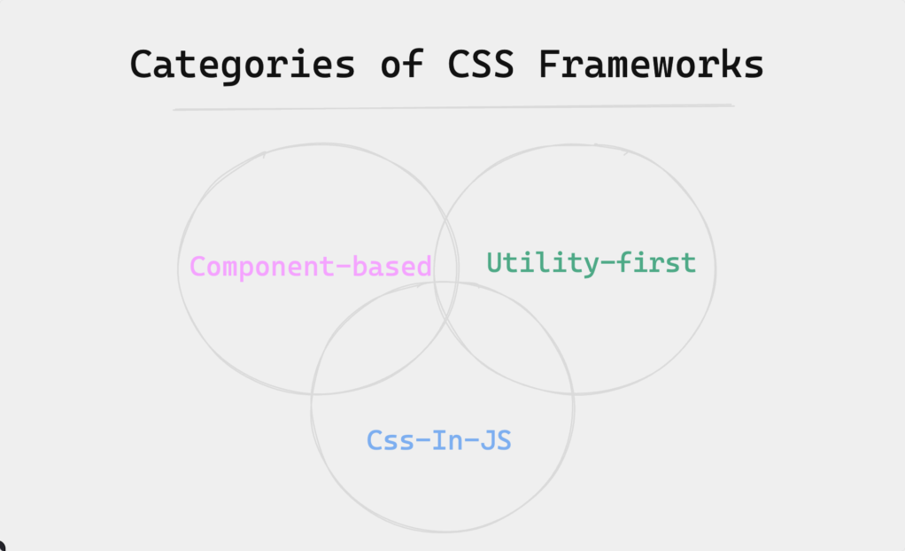 例如,上图展示了 CSS 框架的三个类别如何相互交织。