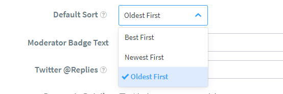 添加自定义功能,让用户根据 “Oldest First“、”Newest First” 或 “Best First” 对评论进行排序。从 Disqus 面板点击 “Settings” 选项卡中的 “Community“,然后从 “Default Sort” 下拉菜单中选择顺序。