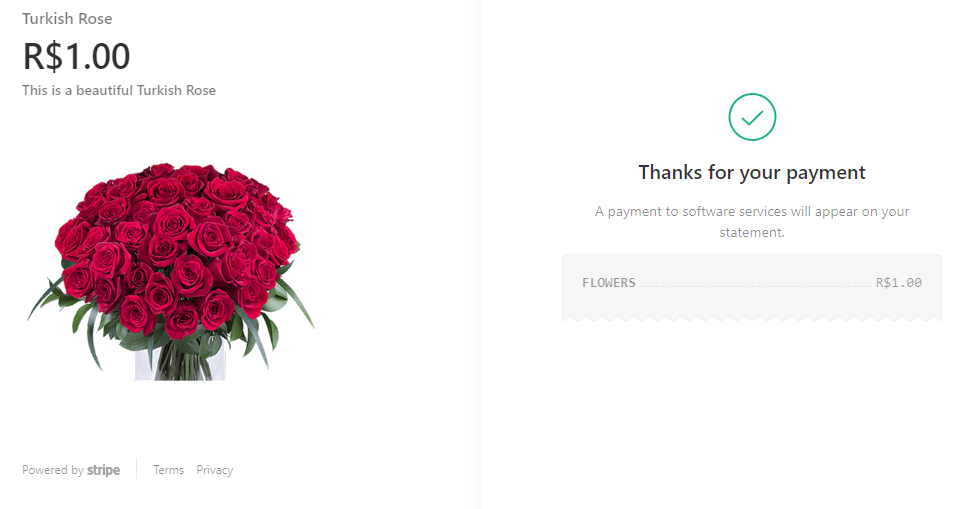 点击 PAY。如果支付成功,Stripe 会向客户显示购买确认。