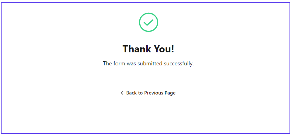 提交表单后,Getform 会将您重定向到确认或感谢页面,说明提交成功。