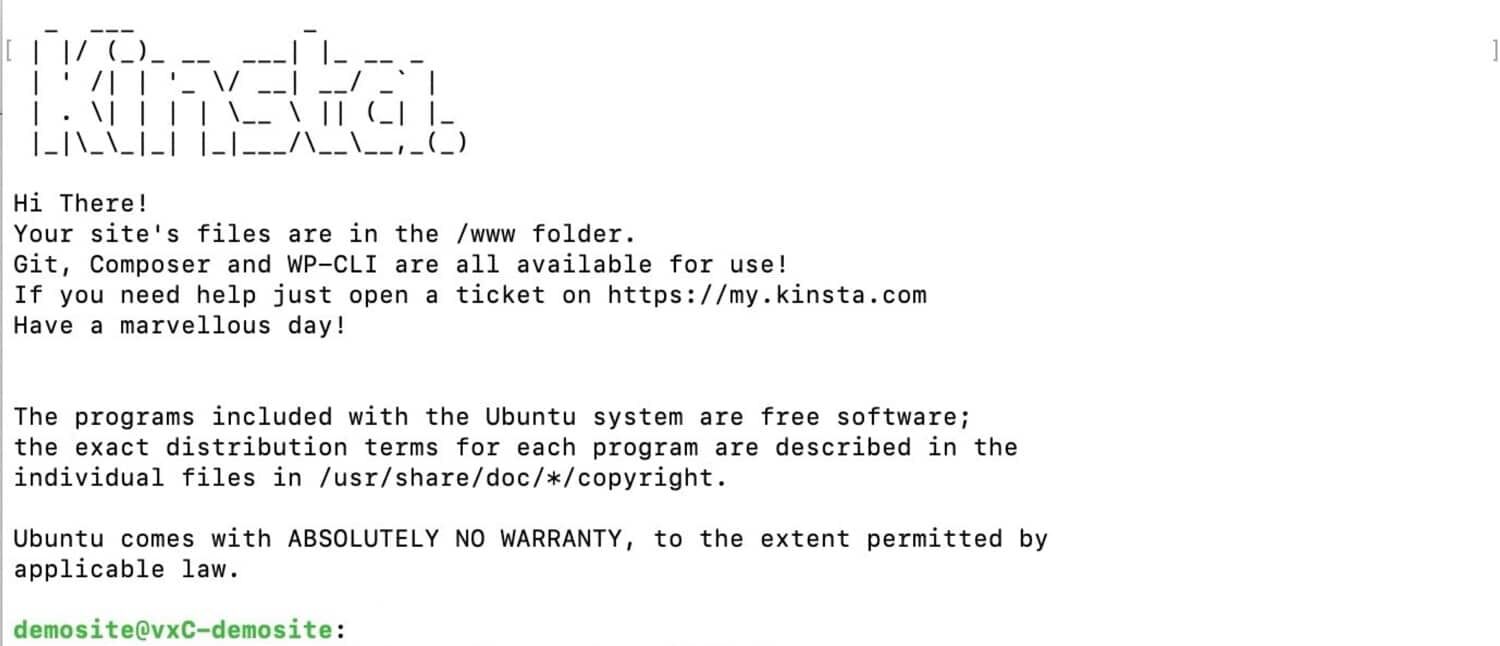 使用 Kinsta,WP-CLI 随主机一起提供,您可以立即开始使用。如果你的主机提供商没有为你提供 WP-CLI,你可以按照本 WP-CLI 指南中的步骤进行安装。
