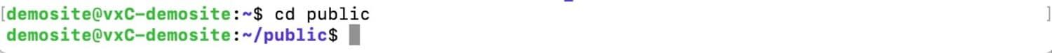 使用 cd 命令更改目录。你会被带到新的目录,命令行会显示你所在的位置: