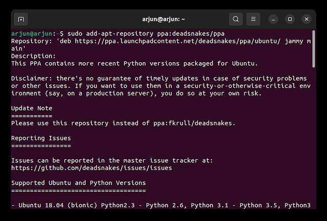 sudo add-apt-repository ppa:deadsnakes/ppa