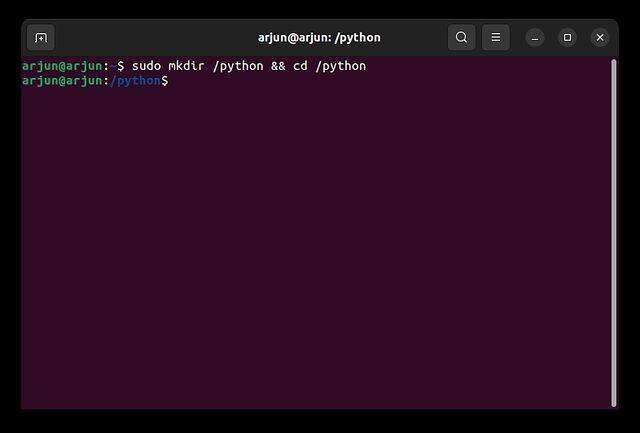 3. 然后,创建一个 “python” 文件夹并移至该文件夹。如果出现 “Permission denied” 错误,请使用 sudo 运行该命令。