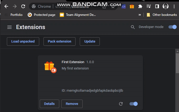 现在我们可以在浏览器中查看弹出页面了。注:在更改 manifest 文件时,必须始终重新加载扩展,如下面的演示所示。