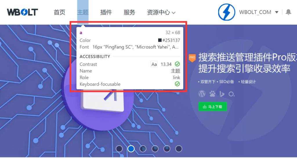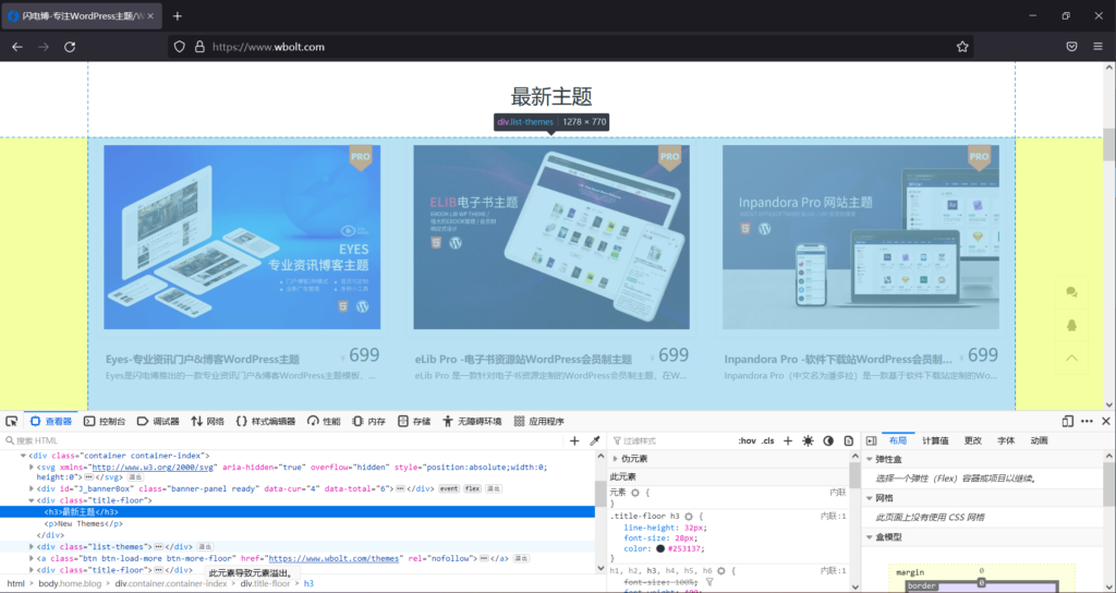 检查元素工具对于解决问题非常方便。例如,如果元素的颜色或字体看起来不太正确,您可以使用我们在上一节中描述的工具快速检查它。