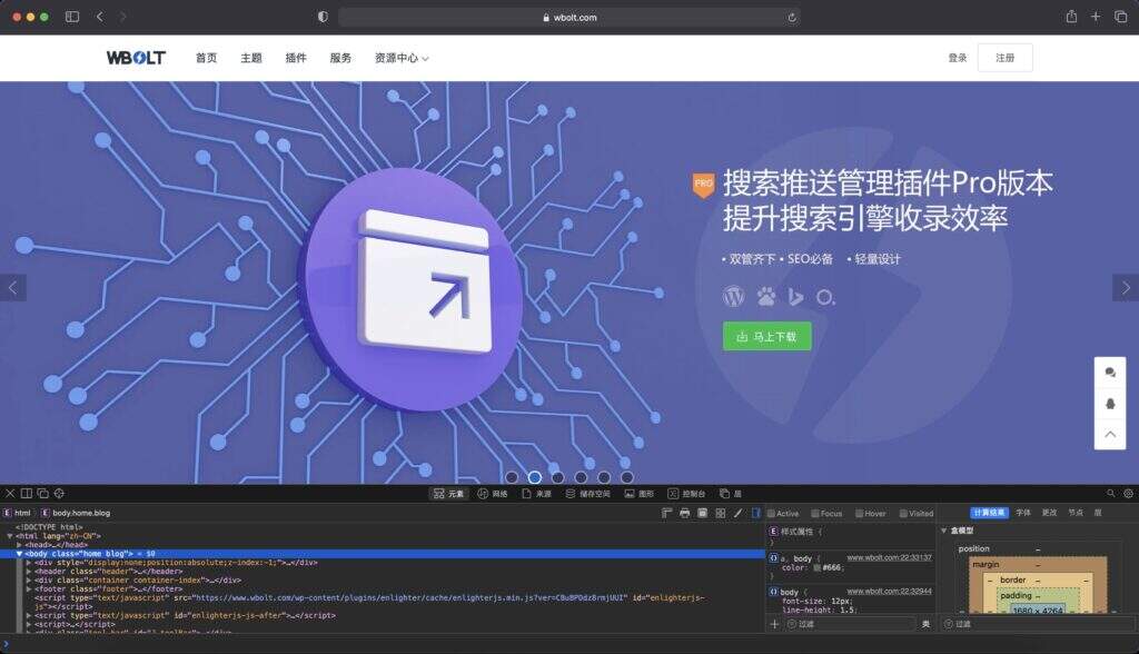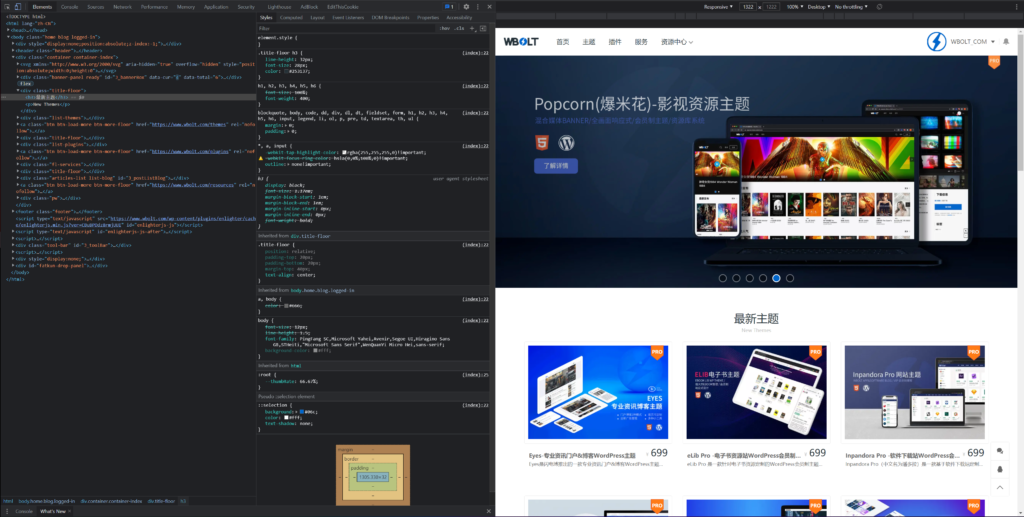 根据 检查元素窗口的打开位置,其中一部分将显示以 开头的页面源代码。当你点击代码中的不同内容时,右侧(或下方)会显示样式,包括字体、颜色、边距、衬垫等。