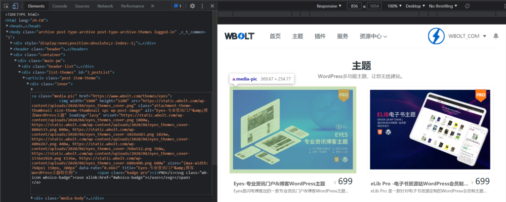 检查元素工具还可以轻松预览图像更改。这也是尝试不同图像尺寸的绝佳方式。