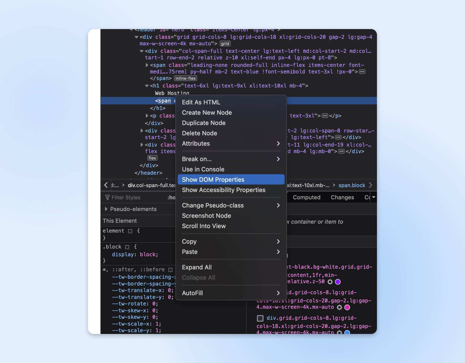 检查元素功能还提供了一种与文档对象模型(DOM)交互的方式–文档对象模型是编辑器中可见的页面元素的结构化表示。