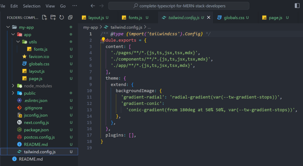Tailwindcss 配置文件是一个包含项目中 Tailwindcss 配置的文件。以下是为本演示安装的应用程序的 Tailwindcss 配置文件。