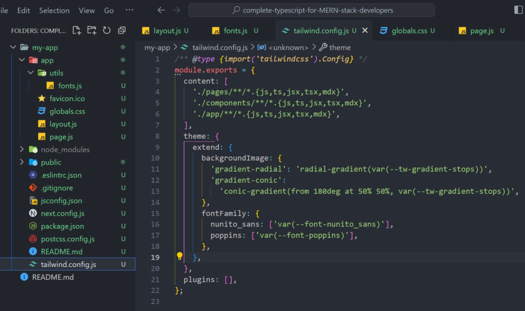 首先:如上所述,我们已经确定字体工具文件将保持不变。现在,我们可以在 Tailwindcss 配置文件中设置字体。
