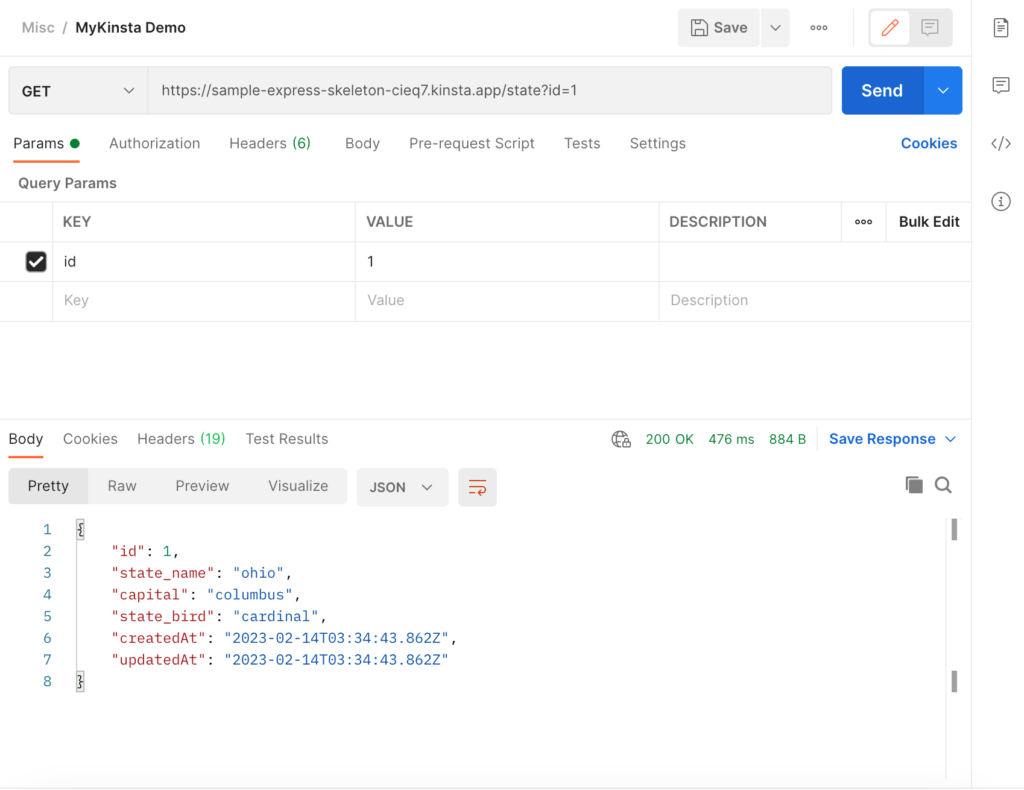 向 MyKinsta 托管的全功能应用程序发出 GET 请求。