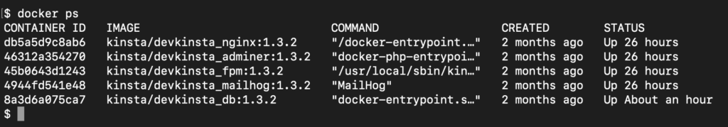 默认情况下,该命令会显示所有正在运行的容器列表。不过,你可以添加一个标记,根据磁盘使用大小、链接容器和标签等属性列出容器。