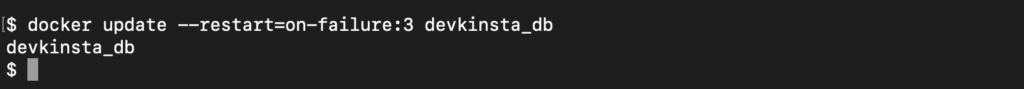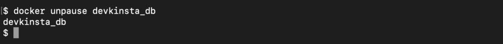 docker unause 命令会恢复已暂停的容器进程。与前一条命令一样,你必须指定容器名称,如下所示:
