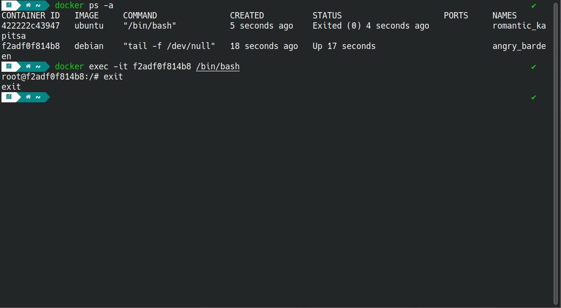 该命令会在容器内启动一个新进程,运行指定的命令。你可以用它在容器内运行任何命令,包括像 bash 这样的交互式 shell。