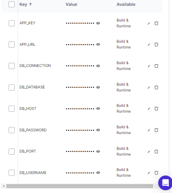 DB_CONNECTION= DB_HOST= DB_PORT= DB_DATABASE= DB_USERNAME= DB_PASSWORD=