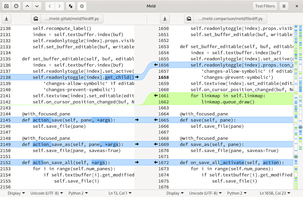 Meld应用程序界面。