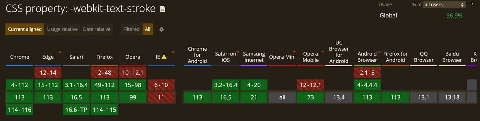 如果你使用 text-stroke 属性来设置文本的轮廓,而用户使用的是不支持的浏览器,那么如果文本的颜色与背景颜色相匹配,那么这些文本可能就不可见。