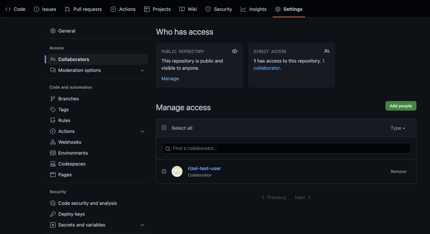 任何人都可以打开你的Codespace,但环境变量不会对所有人都有效。为了让人们看到同样的结果(比如,为了让API调用发挥作用),你需要把用户添加为版本库合作者。如果他们不是版本库的合作者,他们会说页面上有一个破碎的图像。查看GitHub文档,了解如何为你的版本库添加合作者。