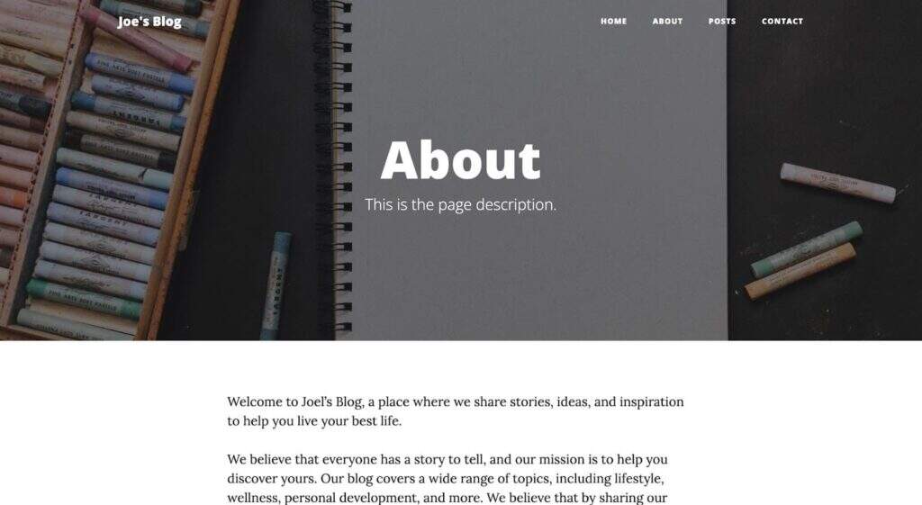 现在,你可以为正面内容块添加一个背景选项,并为其图片添加一个路径。例如,在 “关于” 页面上,这就是正面内容: