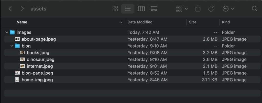 - assets:一个包含你的网站所使用的任何文件的目录,如图片和CSS文件。