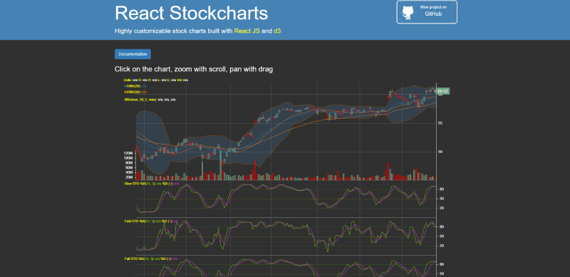 与本列表中的其他选项一样,React Stockcharts是一个建立在React JS和D3上的图表库。它专注于表示时间序列数据和股票图表数据。