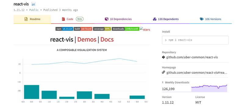 它是一个非常适合初学者的库。你不需要任何数据可视化的知识来使用React-Vis,因为它使用起来很简单。此外,它为你提供了开始创建可视化所需的所有信息。